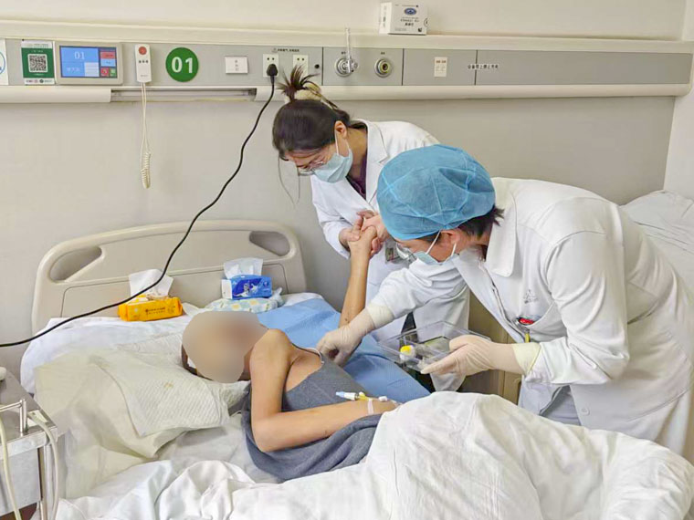 接诊后,秦皓副主任医师与护理团队立即启动危重症抢救:吸氧、建立静脉液路、持续心电监护……刑冬副主任医师迅速评估病情,果断决定紧急收入院并行连续性血液净化治疗。在征得家属同意后,迅速为患者完成深静脉置管,血液净化团队同步准备。随着机器的运转,血液中的多余钾离子被逐步清除,心电图波形稳定,复查血钾降至5.0mmol/L,老人转危为安。急诊医护用精准研判与快速处置,赢得了这场与“隐形杀手”高钾血症的赛跑。